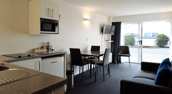 Our Superior One Bedroom Suite is thoughtfully designed to cater to families or small groups, providing ample space and comfort for up to three guests. It features a single bed in the lounge and a separate bedroom with a super king bed that can be split into two long singles, offering various sleeping arrangements. The suite includes a full kitchen with all the necessary appliances for family meals. Experience a blend of convenience and home-like warmth in this spacious suite, perfect for those looking to explore Invercargill with loved ones.